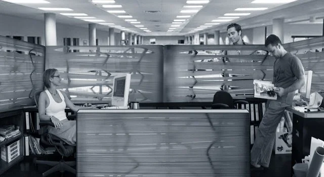 Awarded the Future Furniture Award by Interior Design Magazine, the Dynamic Screen is an adaptive wall system composed of vertical elasticized strips of varying heights. Its surface transforms from flat to three-dimensional, allowing light, views, and adjustable privacy. A steel frame with rotating zigzag posts applies tension to reshape the screen, enabling it to function as a responsive room divider throughout the day.