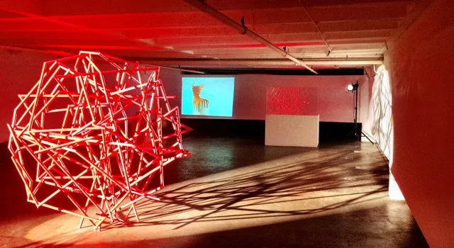Following his solo exhibition Nature and Design at Industry Gallery, Pacific Design Center, Los Angeles, Antonio Pio Saracino was commissioned by the Italian Cultural Institute of Los Angeles to create an installation. The Globe is a seven-foot spherical structure composed of red wooden posts, generated through an algorithm. It visualizes global cities and their digital, non-physical connections, proposing a new model of the world shaped by virtual networks rather than geography.