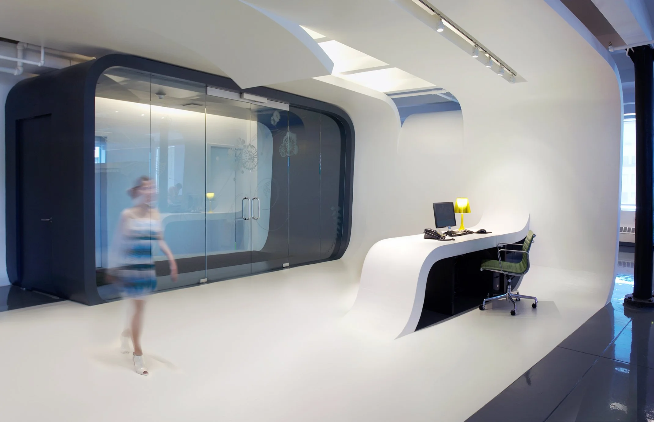 APS Designs and Blatz Architect reimagine Tibi’s 6,000 sq. ft. corporate headquarters and showroom, blending loft openness with dynamic, sinuous surfaces. Curved forms evoke fabric folds, defining functional zones while preserving spatial fluidity. Strategic cutouts and light interplay create depth, highlighting the building’s original character. This design harmonizes fashion, architecture, and movement, offering a sophisticated, immersive environment that embodies Tibi’s brand identity.