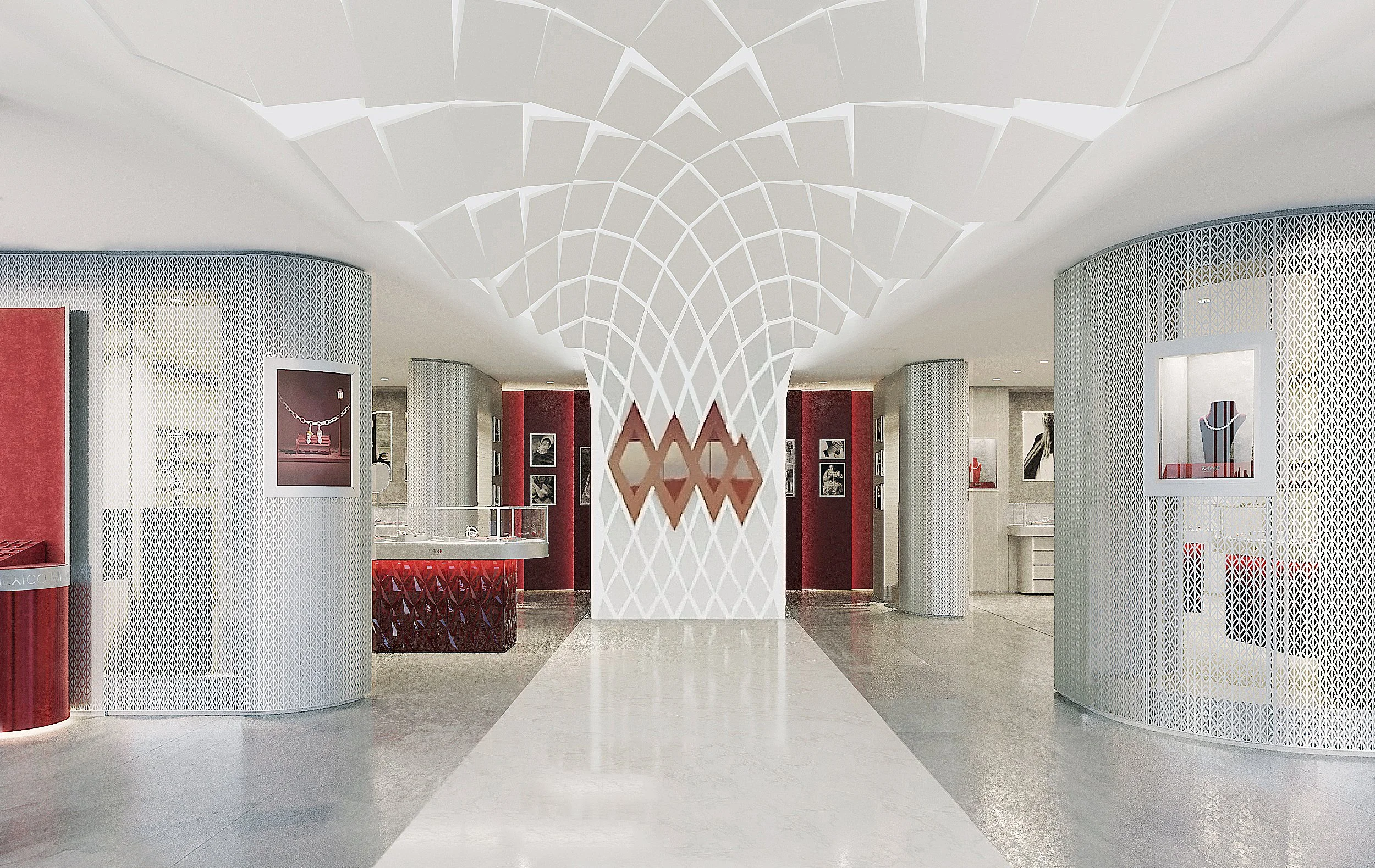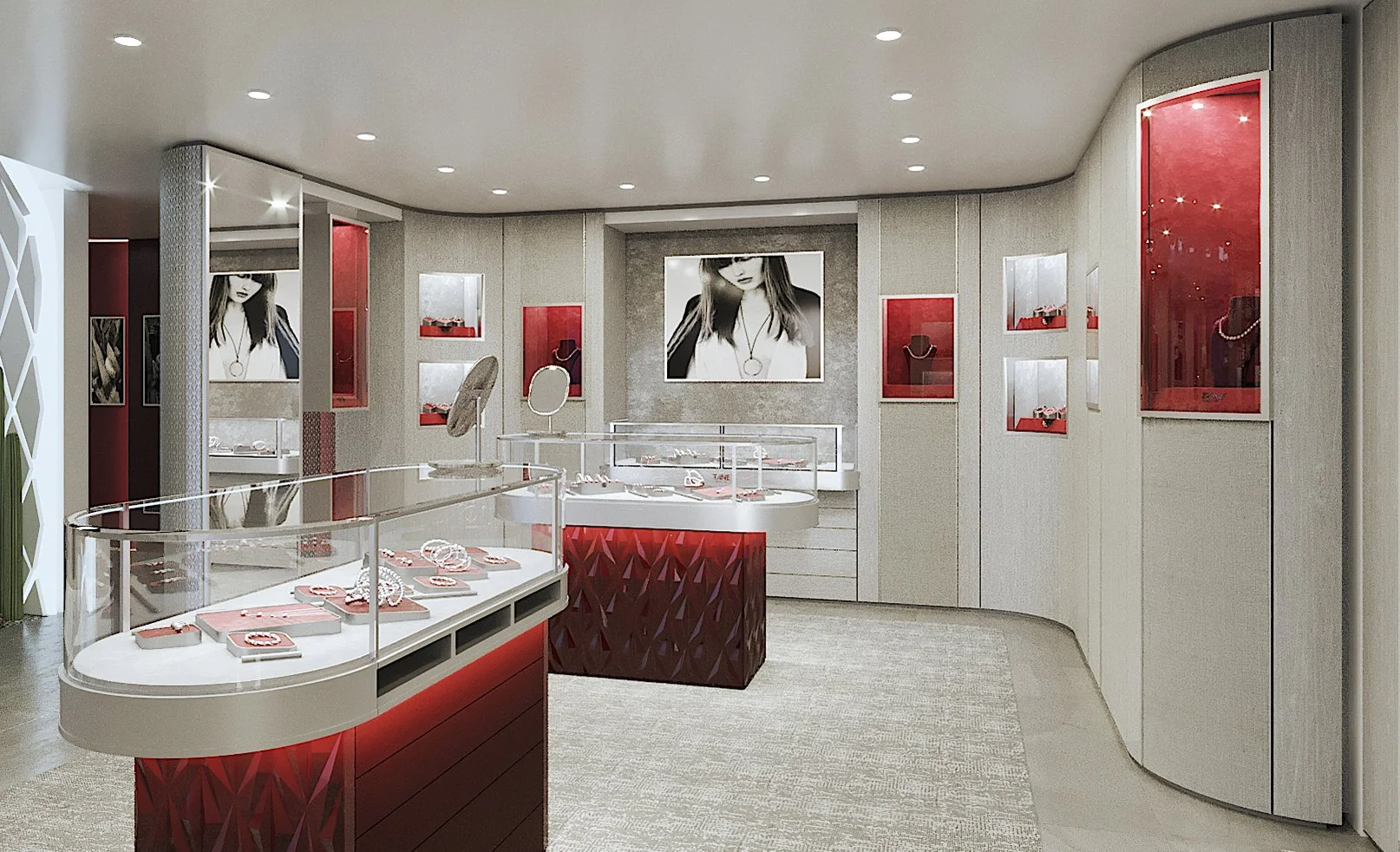 APS Designs’ 2,500 sq. ft. Mexico City jewelry boutique transforms retail into an immersive journey of luxury and craftsmanship. Through a curated interplay of marble, ash wood, and silver screens, the design elevates brand identity and artisanal storytelling. Red and white hues create intimate, opulent spaces, guiding visitors through a sensory path where each piece becomes art. The boutique harmonizes elegance, heritage, and immersive retail, embodying refined sophistication.