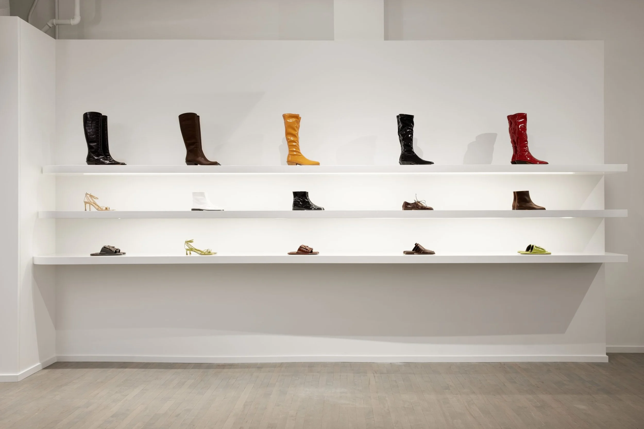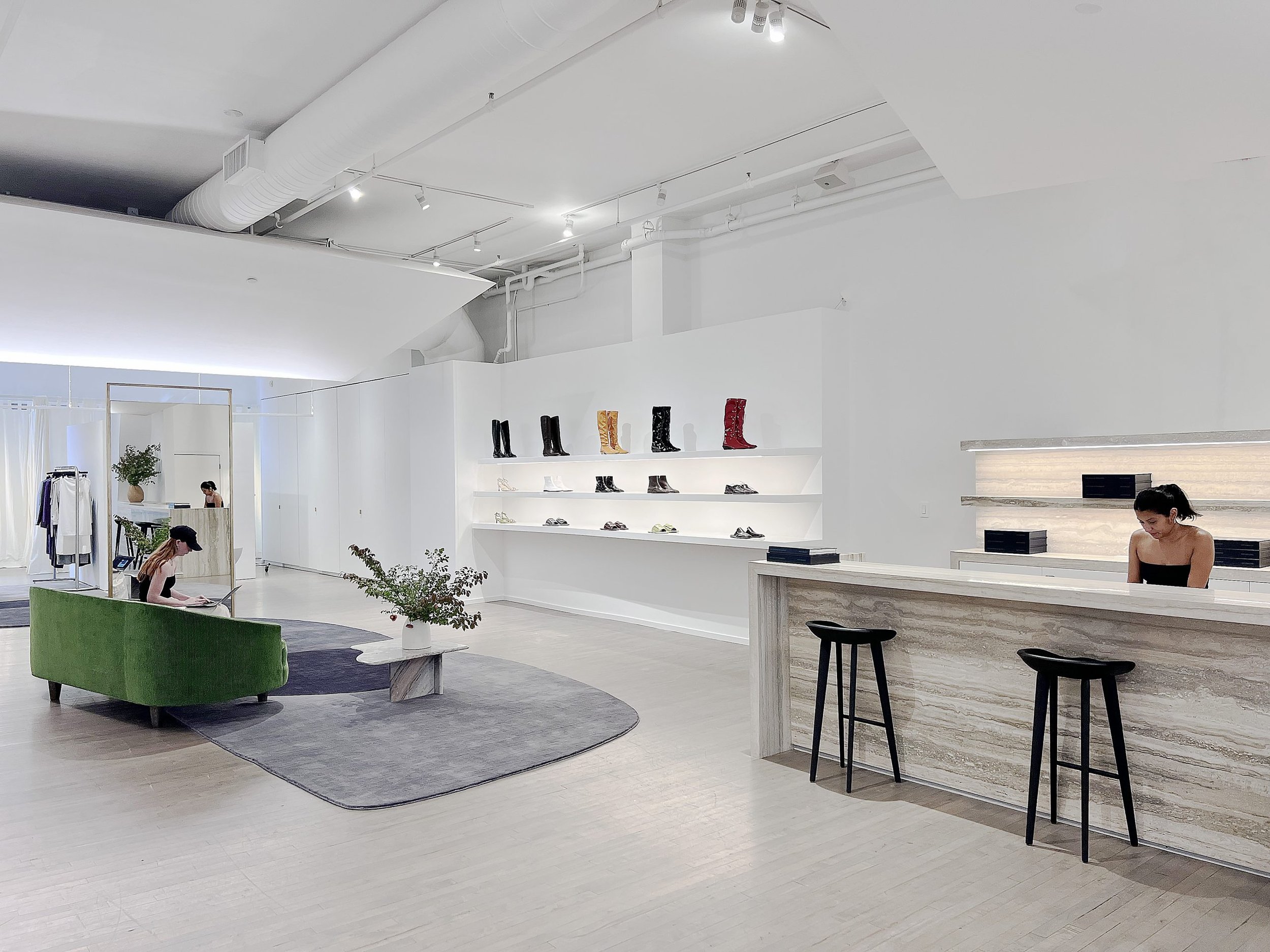 The Tibi flagship boutique in SoHo, New York, designed by APS Designs, redefines retail as an immersive lifestyle experience. Spanning 2,200 sq ft, it blends modernity with historic architecture, using silver travertine, wood, and stainless steel to craft elegant, functional displays. Bespoke racks, layered carpets, and a curated café/bar enhance engagement, creating a sophisticated space that reflects Tibi’s brand identity while merging artistry, functionality, and contemporary design.