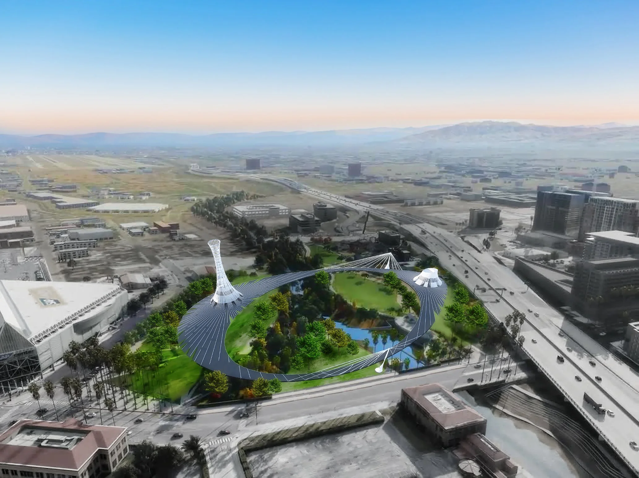 City Lantern Tower and Plaza in San Jose, designed by APS Designs, is a visionary 200-foot landmark celebrating innovation and community. Anchored by a visitor center, riverside promenade, and twin bridges, the tower features illuminated rings, an observation deck, and a tech museum honoring Silicon Valley’s achievements. Sustainable by design with photovoltaic tiles, the project blends technology, nature, and light to create a dynamic, energy-positive civic icon.