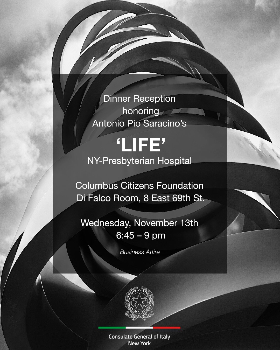 Opening Ceremony honoring the unveiling of the LIFE project by Antonio Pio Saracino at the NY-Presbyterian Hospital. The event was hosted by the Italian Consulate in New York in coordination with the NY-Presbyterian Hospital at the Columbus Citizens Foundation.