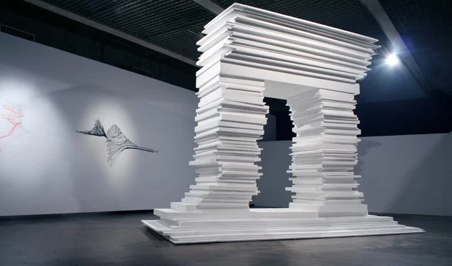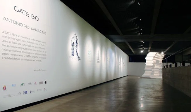The Brazilian Sculpture Museum (MUBE) in São Paulo presents Antonio Pio Saracino’s solo exhibition, featuring GATE 150. Commemorating Italy’s 150th unification anniversary, the site-specific installation resembles a triumphal arch and visualizes centuries of Italian emigration to the Americas through three-dimensional population data. GATE 150 serves as a symbolic portal, representing departure from the familiar and entry into the unknown.