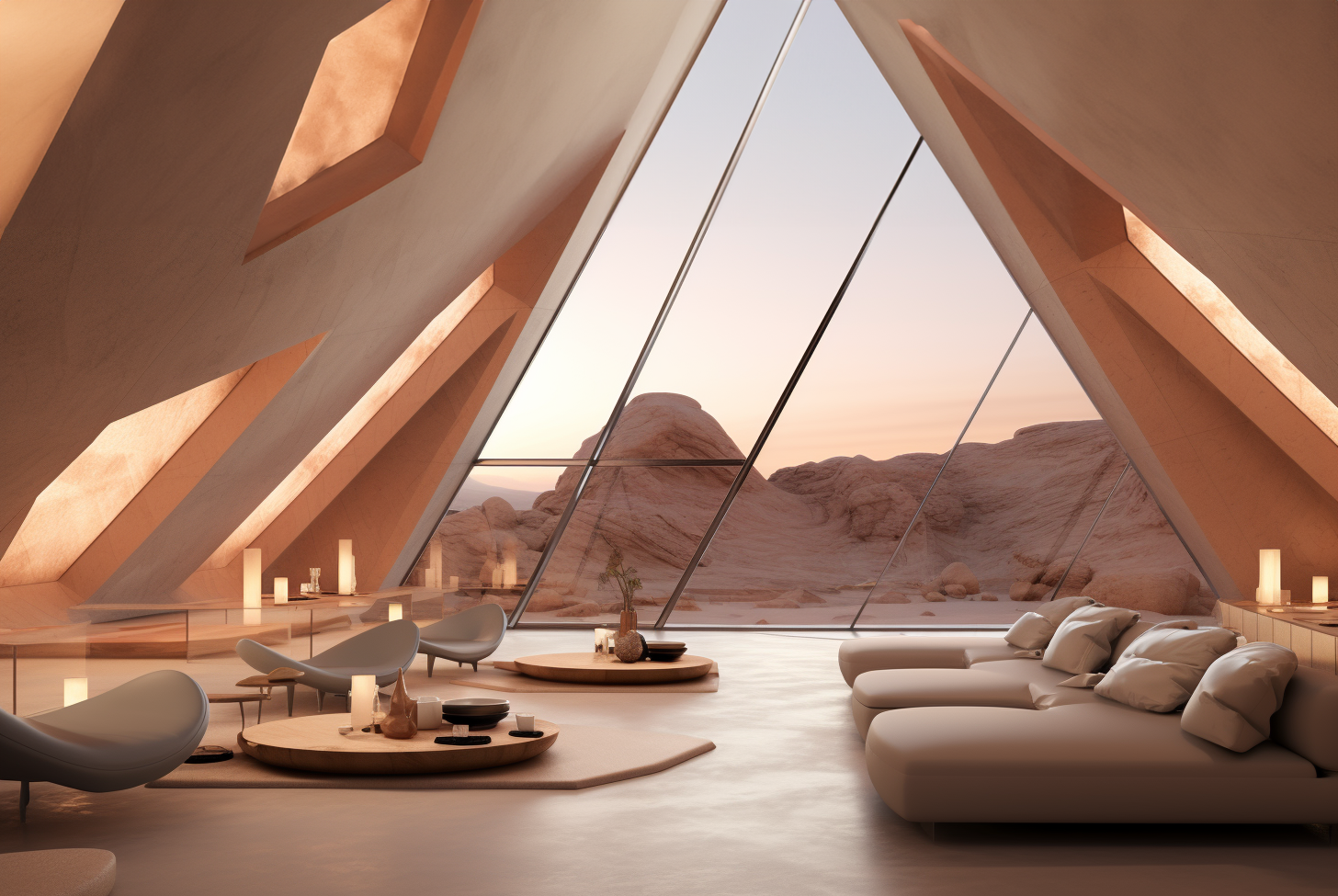 APS Designs’ Desert Resort near Riyadh, Saudi Arabia, redefines luxury hospitality by blending architecture with the desert landscape. Triangulated villa clusters evoke traditional tents, offering private patios, open interiors, and panoramic views. A central plaza organizes amenities, while spa pavilions provide serene retreats. With careful materiality and spatial design, the resort harmonizes privacy, social interaction, and nature, creating an exclusive desert oasis.
