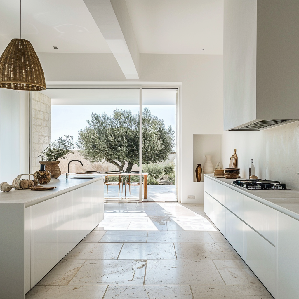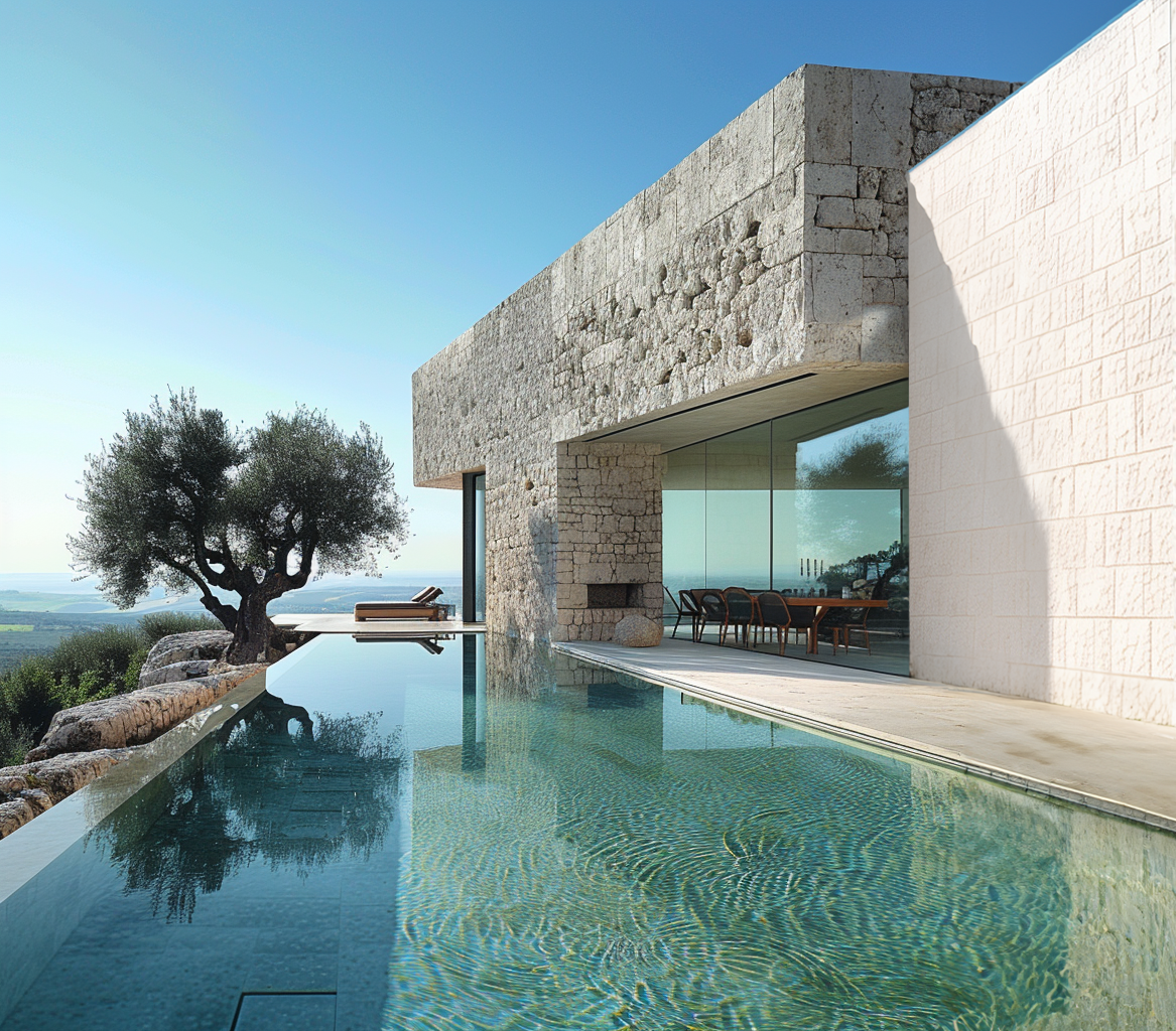 Villa in Salento, designed by APS Designs under Antonio Pio Saracino, reinterprets Puglia’s rural heritage through contemporary architecture. Set among ancient olive groves, the estate includes an eight-bedroom main villa and a two-bedroom pool house, defined by local stone, minimalist volumes, and luminous white interiors. Expansive glazing and an infinity pool overlooking the Adriatic create a seamless dialogue between modern elegance and nature.
