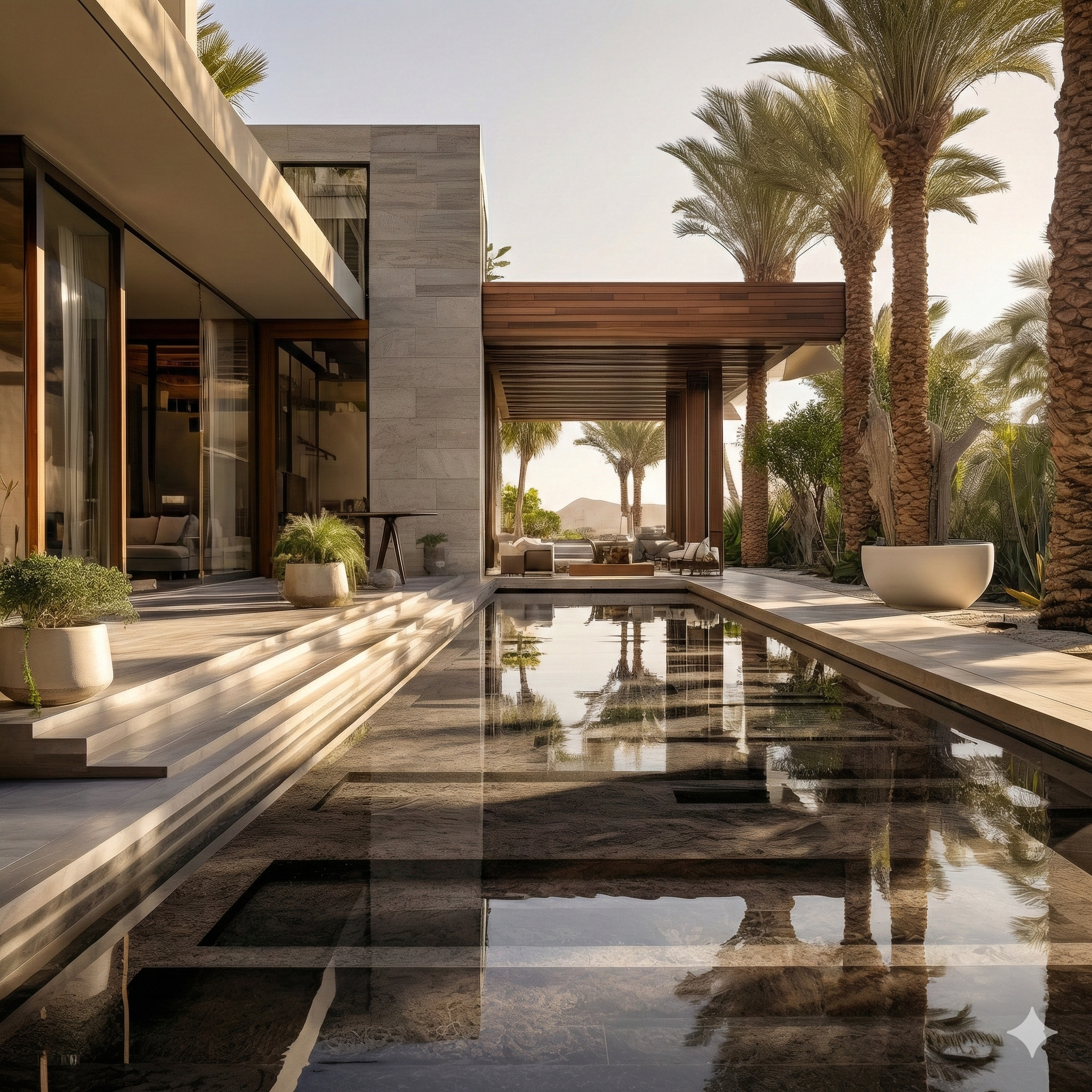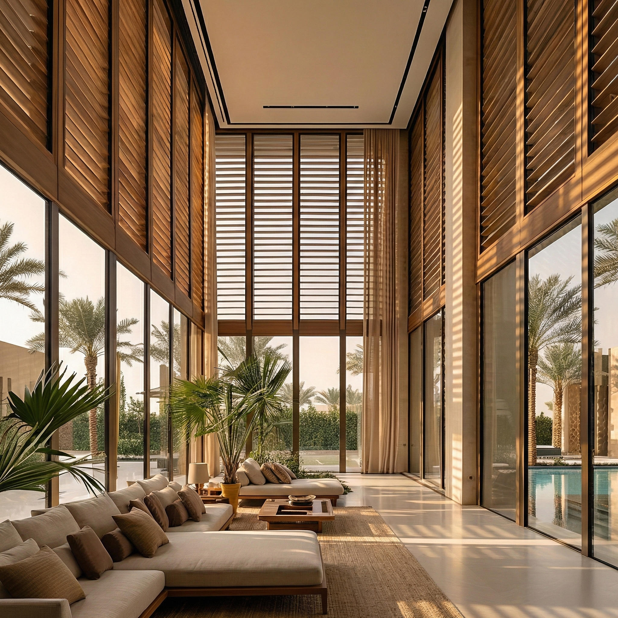 Warm wood, bronze screens, and expansive glazing frame patios and gardens, blending indoor comfort with an outdoor, resort-like calm rooted in local heritage.