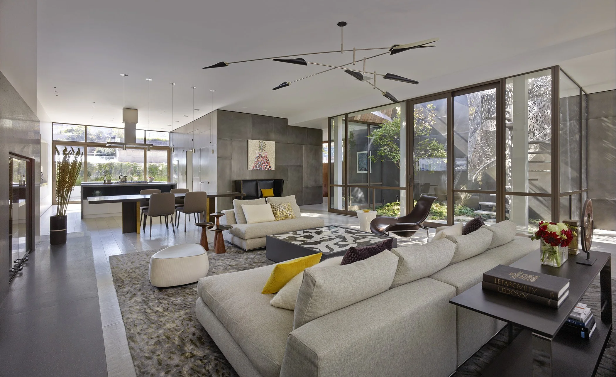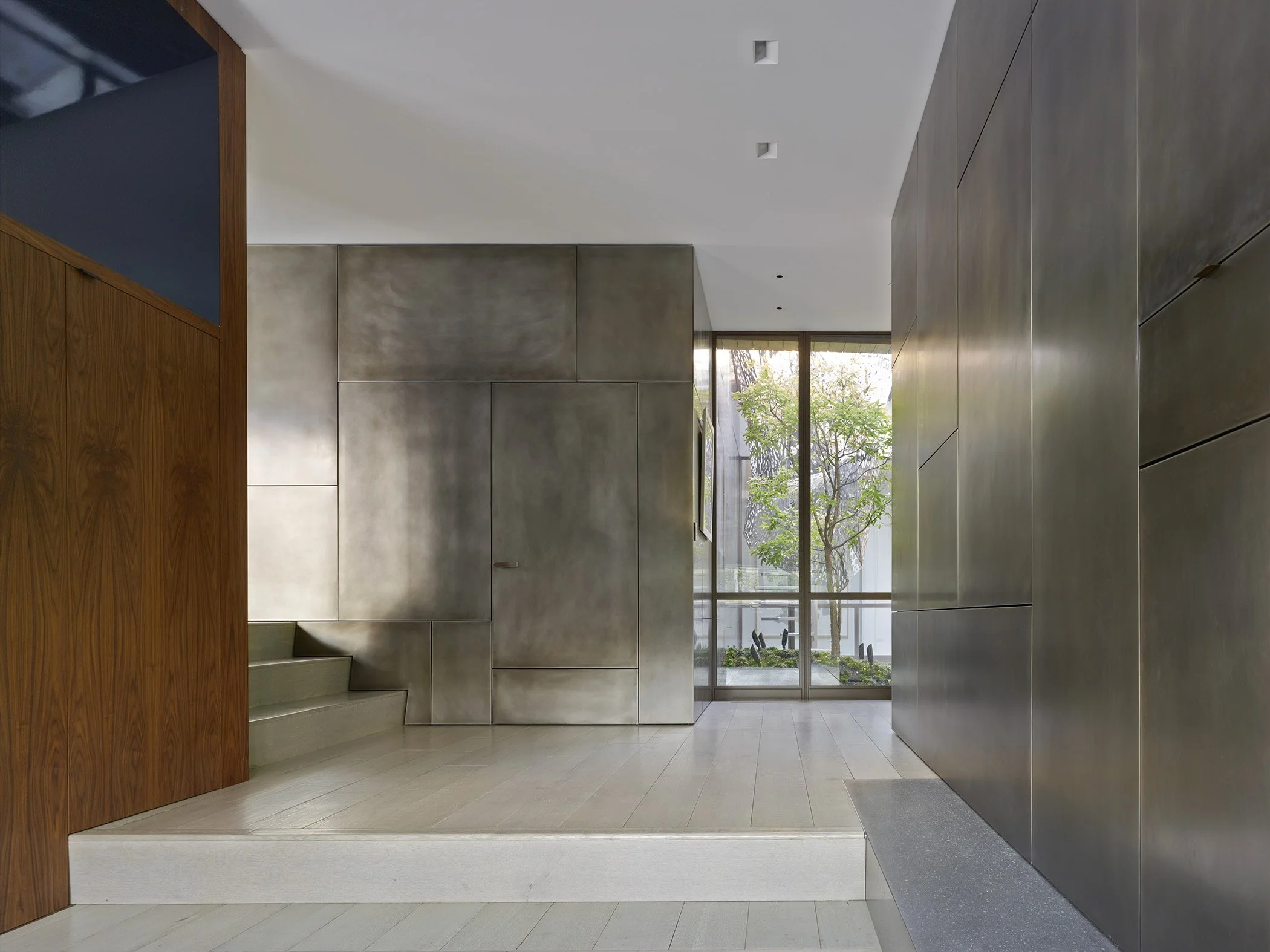 Recipient of the American Architecture Award, American Society of Landscape Architects Award, and Interior Design Best of the Year Award, this two-story Manhattan residence redefines elevated urban living. Spanning 5,000 square feet indoors with 7,000 square feet of outdoor space, it features terraces, a rooftop meadow, and a skylit courtyard. A sculptural stainless steel staircase by APS Designs anchors the home, uniting sustainable innovation, luminous interiors, and panoramic views of the World Trade Center.