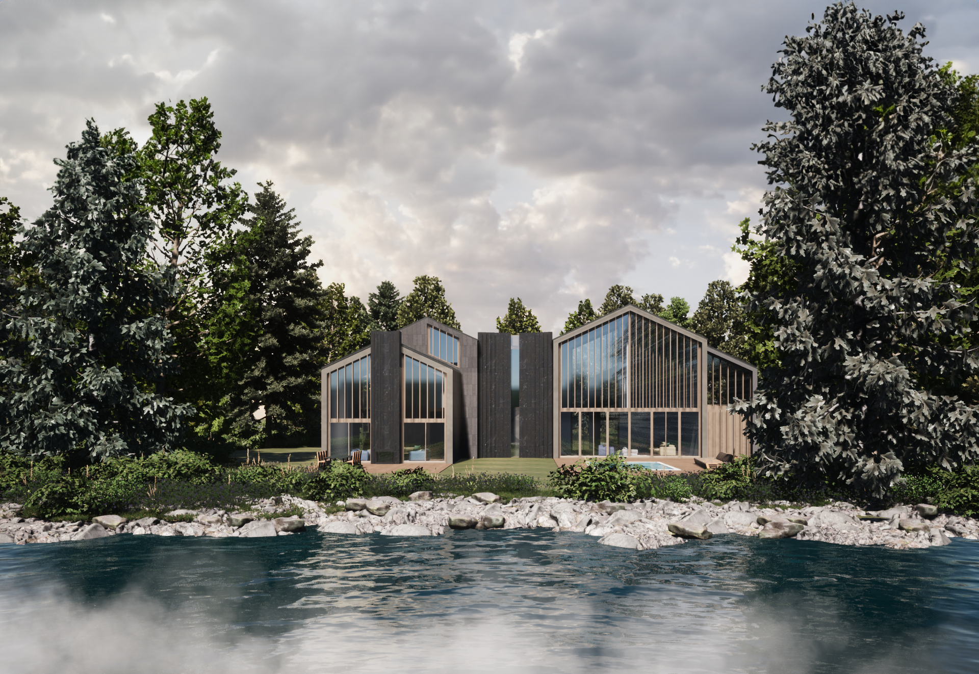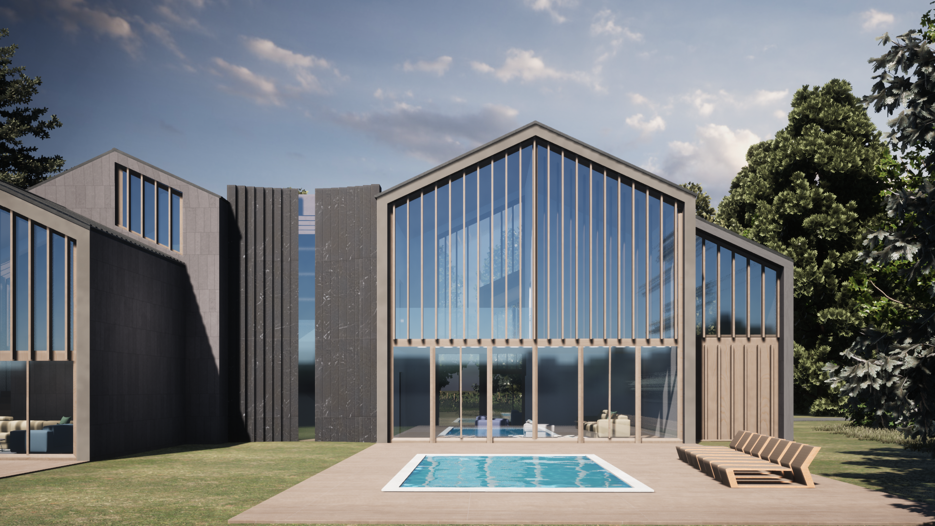 This 3,500 sq ft Hudson Valley barn mansion by APS Designs blends modern comfort with local heritage. Featuring four bedrooms, five baths, double-height social spaces, and expansive terraces, the design connects indoor and outdoor living through wood-framed glass facades. Overlapping volumes, concrete, Italian marble, and bronze details create a refined yet warm atmosphere, offering a contemporary retreat that harmonizes with nature and celebrates the region’s character.