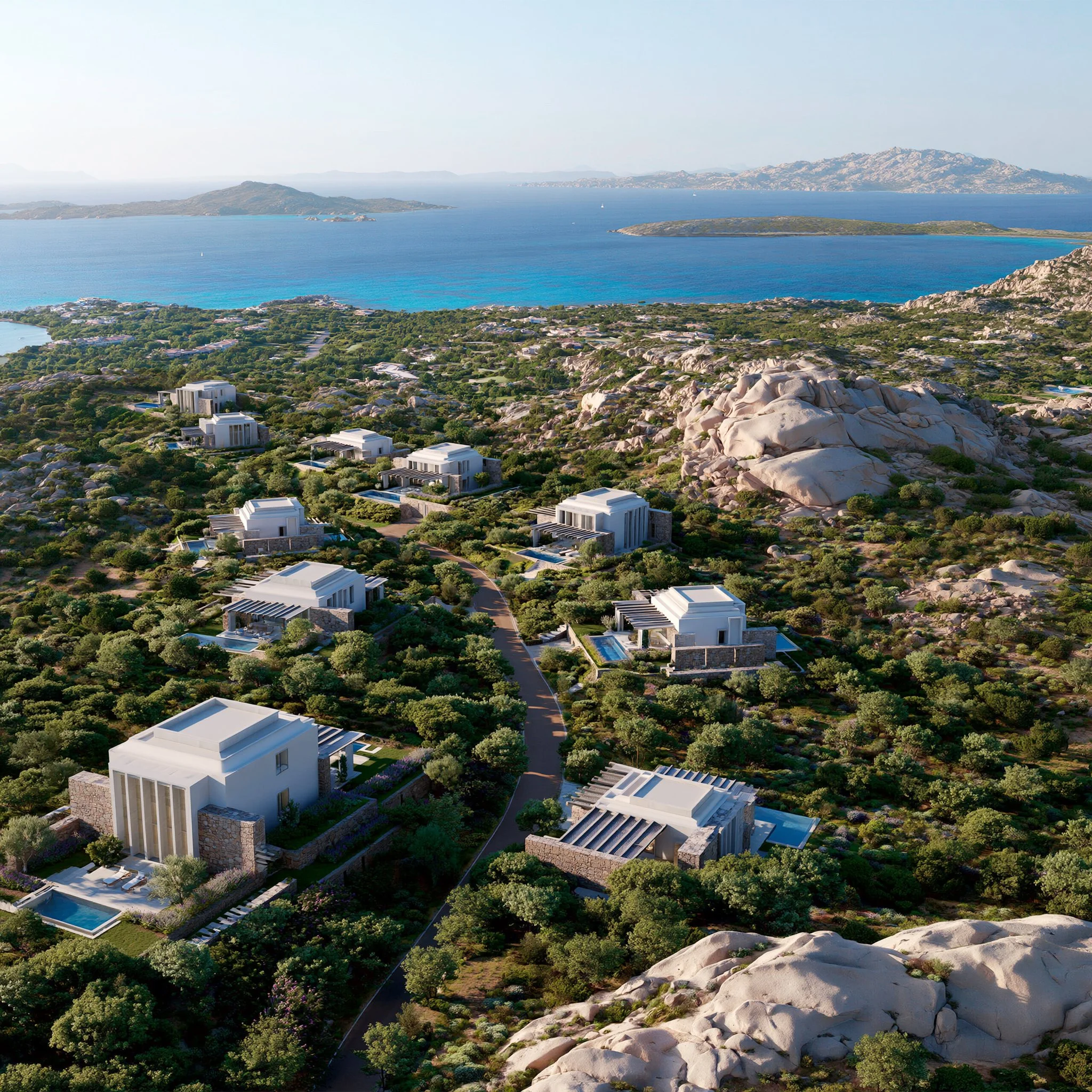 La Maddalena is a sustainable luxury residential development envisioned by Antonio Pio Saracino of APS Designs, with the studio shaping its creative direction, architectural identity, and Mediterranean design language. Set within the rare landscape of Sardinia’s La Maddalena archipelago, the project proposes a collection of 15 contemporary villas rooted in local stone, natural materials, sea views, and a refined dialogue with the surrounding terrain. Conceived for a mid-high luxury market, the development brings together privacy, nature, sustainability, and timeless architectural clarity in one of the most distinctive coastal settings in Sardinia Italy.